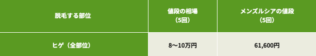 メンズルシアクリニックでは下記の画像のように髭脱毛全部位5回61600円と謳っています。