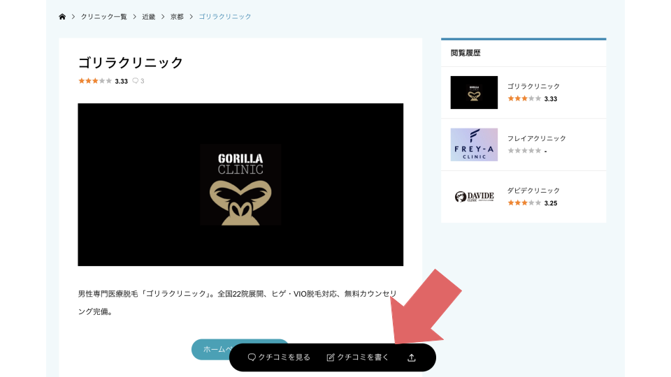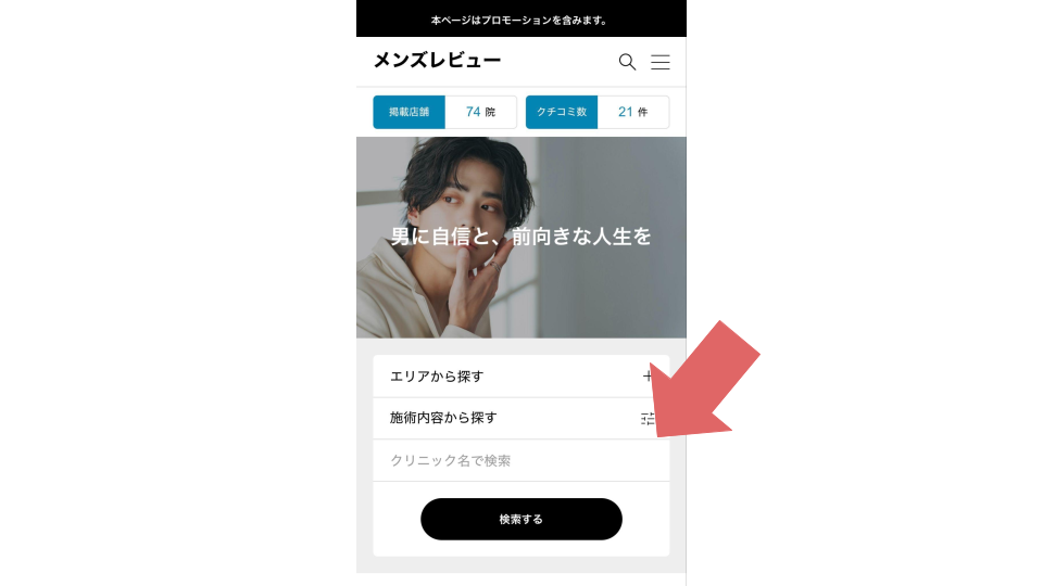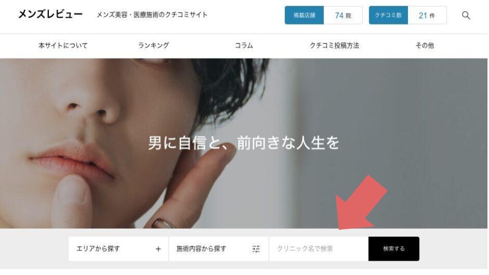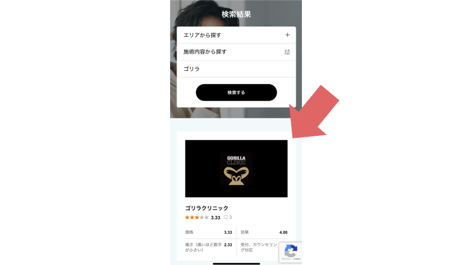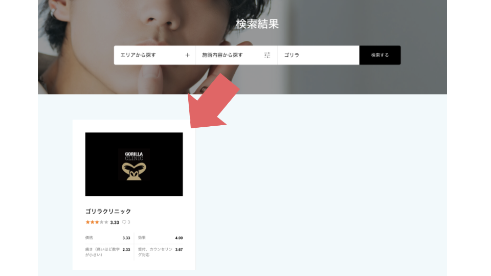1、クチコミを投稿したいクリニックをこちらから検索します。